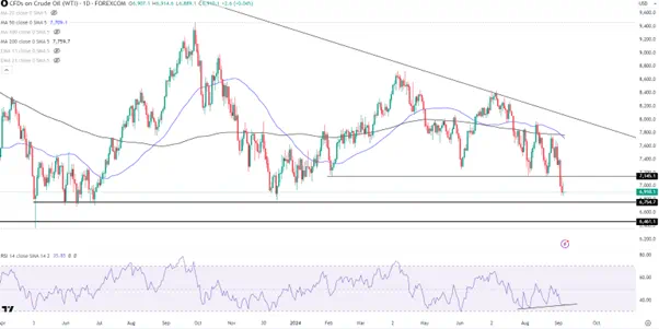 不过RSI指标的背离暗示潜在的止跌反弹的可能。