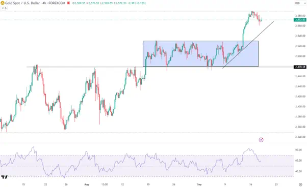 若降息幅度以及利率指引不及市场预期(今年降息4次,明年底之前累计降息10次)的鸽派,金价或遭遇回调压力,下方关注2550一线的初步支撑,其次是此前震荡区间上沿2530一线。反之,若出现50个基点降息+大幅下调点阵图利率预测的“鸽派降息”,将为黄金提供持续的上涨动能。