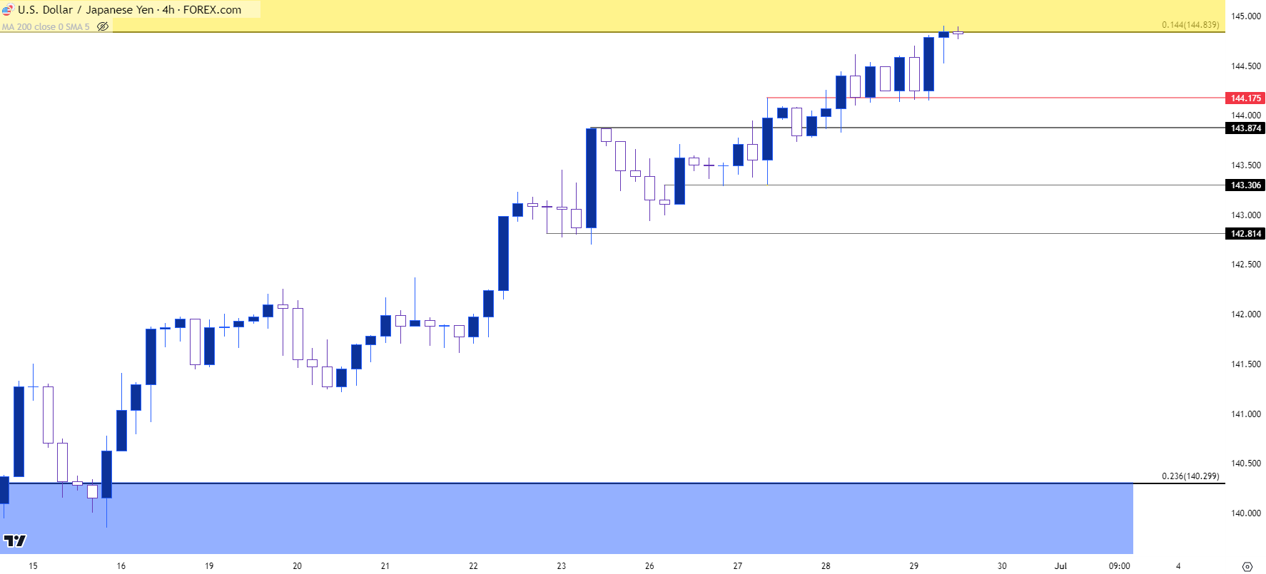 • 日元疲软继续助推美元,该货币对现在接近145的关键点位,这是去年上涨期间的重要点位,多头最终测试150之前在此处停滞了大约一个月。150是财务省主动干预的点位,帮助该货币对去年在此封顶。